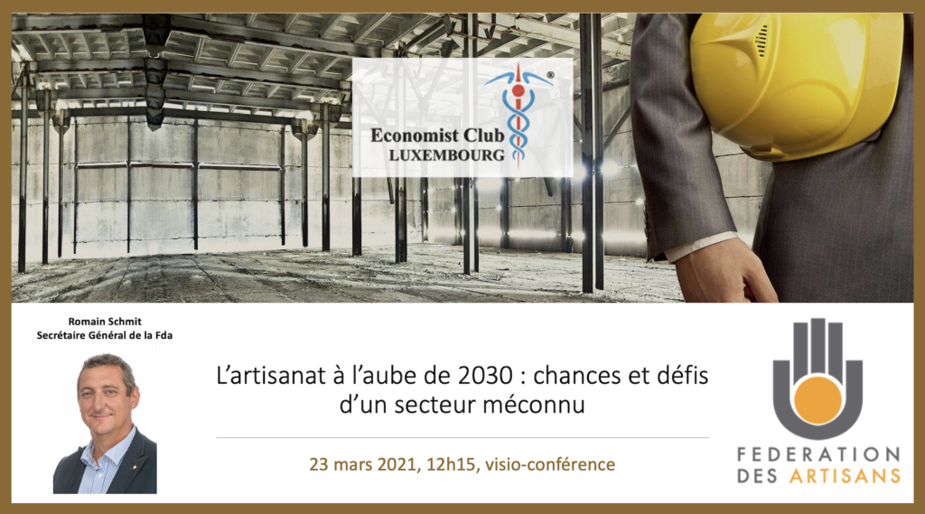 L’Economist Club Luxembourg a eu le plaisir d’organiser une conférence avec Romain Schmit, Secrétaire Général de la Fédération des Artisans, le 23 mars 2021. « L’artisanat à l’aube de 2030 :…