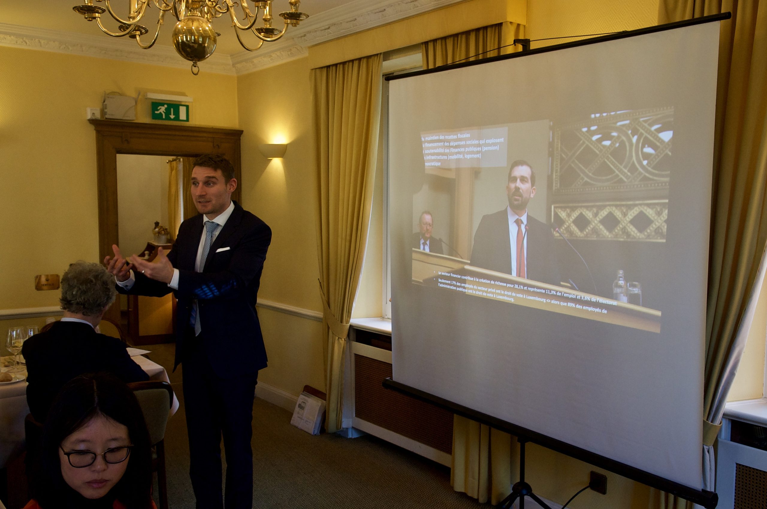 Après une mise en contexte réalisée par notre Président, M. Nicolas Simons, les membres de l’Economist club ont eu droit à la présentation du Rapport sur le Budget des dépenses et recettes de l’Etat luxembourgeois, réalisé par le Rapporteur du Projet de loi, M. Yves Cruchten.